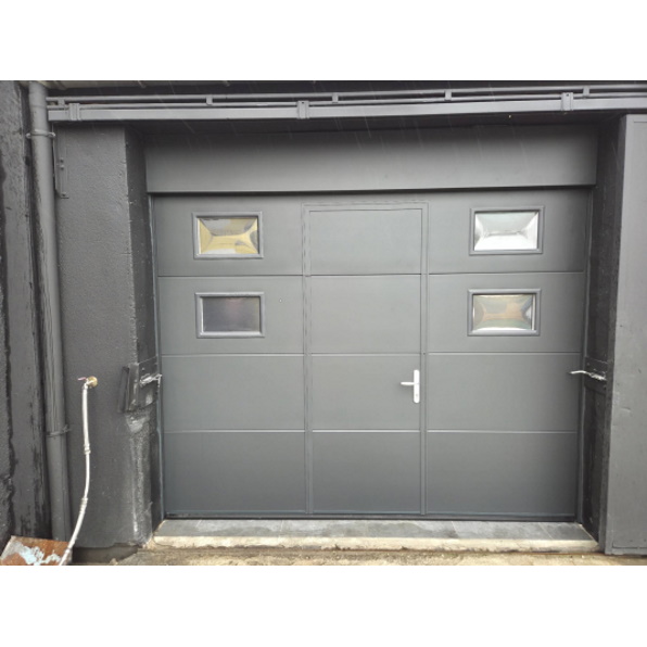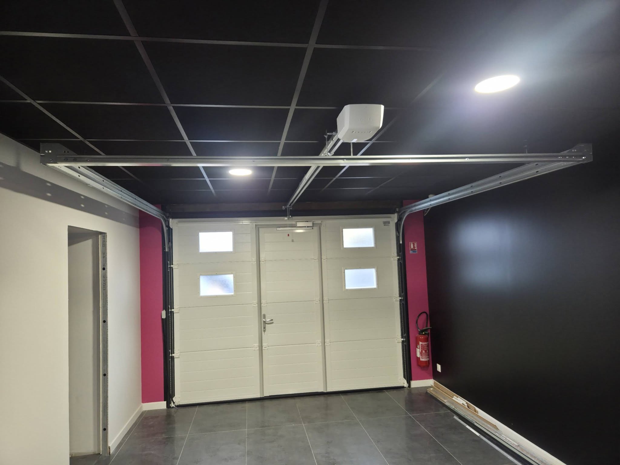 Une Nouvelle installation à la Menuiserie BERTHELON : porte sectionnelle motorisée avec portillon intégré. Un résultat soigné et un client pleinement satisfait !
